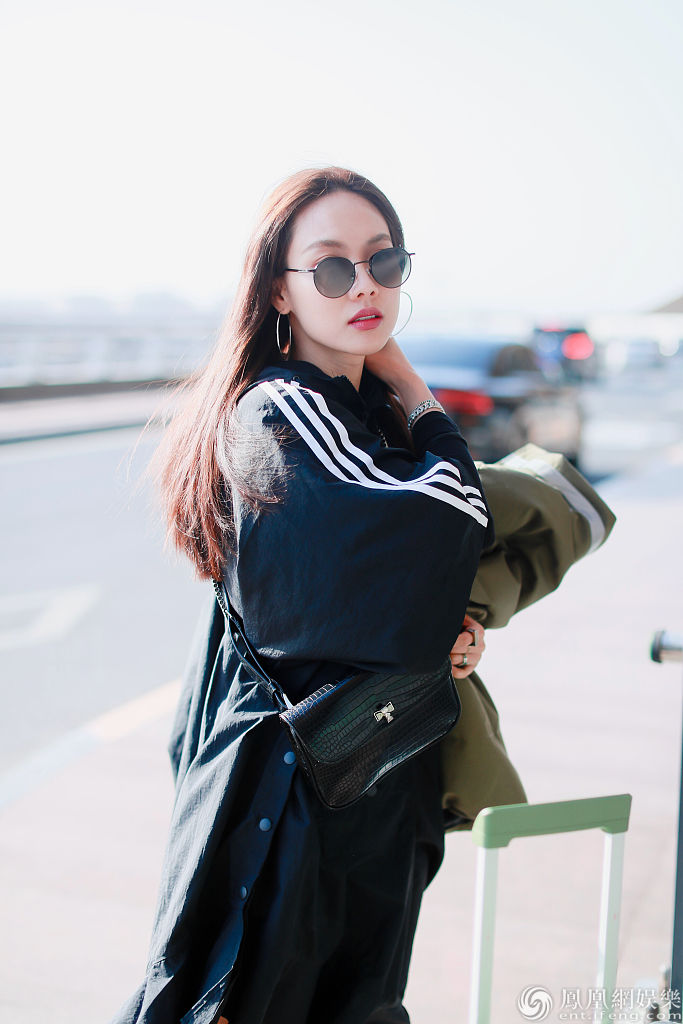 她长发飘飘墨镜遮面气场十足,对镜性感摆pose超级撩人,穿运动裙长靴玩转混搭。