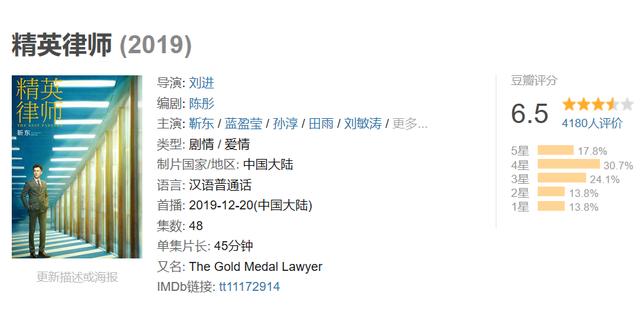 只可惜这次靳东真的碰到铁板了,从口碑爆棚到下降崩塌真的只需要三天时间,现在的豆瓣评分已经降到了6.5,很多网友纷纷留言表示《精英律师》抄袭美剧《金装律师》,这是怎么回事呢?到底《精英律师》有没有抄袭呢?