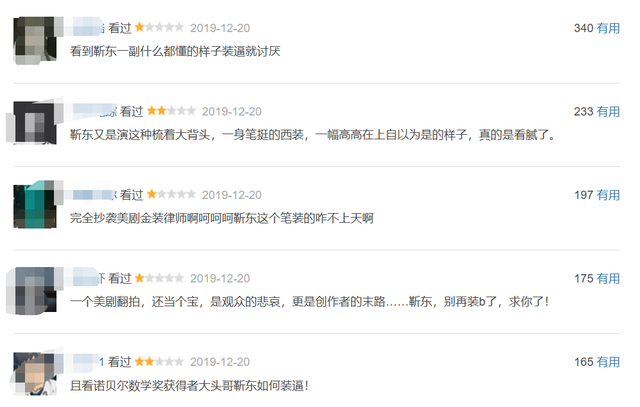 跳戏归跳戏,那也是人家的演技确实出色,所以才会让观众记忆犹新,而且《精英律师》还是有靳东主演的,所以该剧刚开播热度也是居高不,大有与《庆余年》分庭抗衡之势,只可惜好景不长,仅仅三天口碑瞬间崩塌,而网友打差评的理由竟然是抄袭。