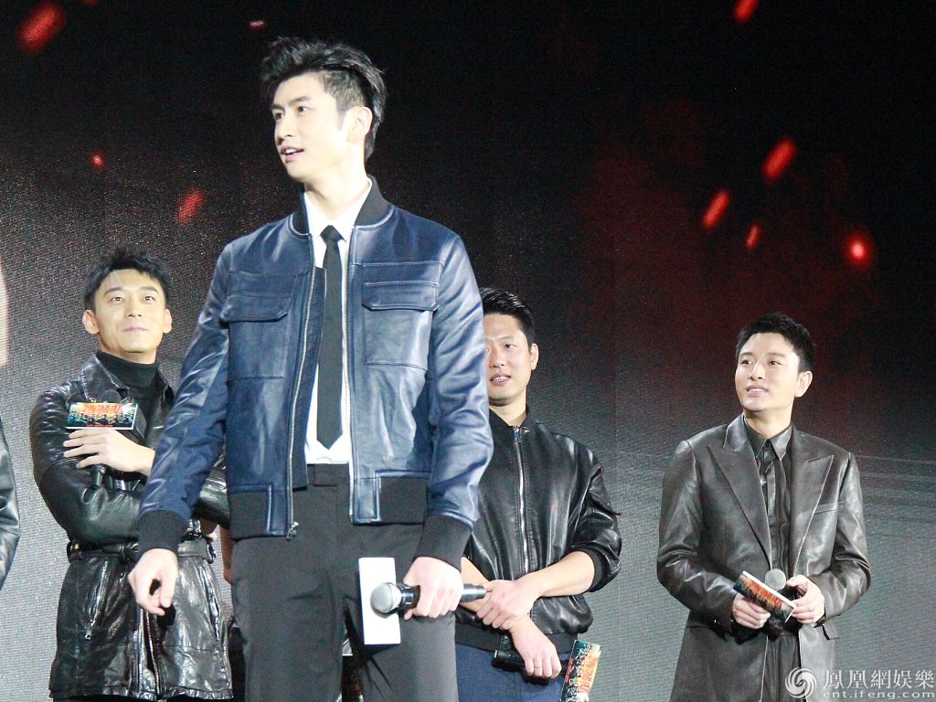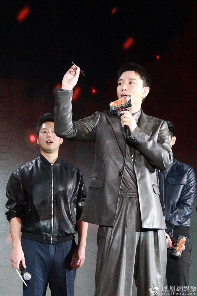 张云龙穿深蓝皮衣帅气有型。
