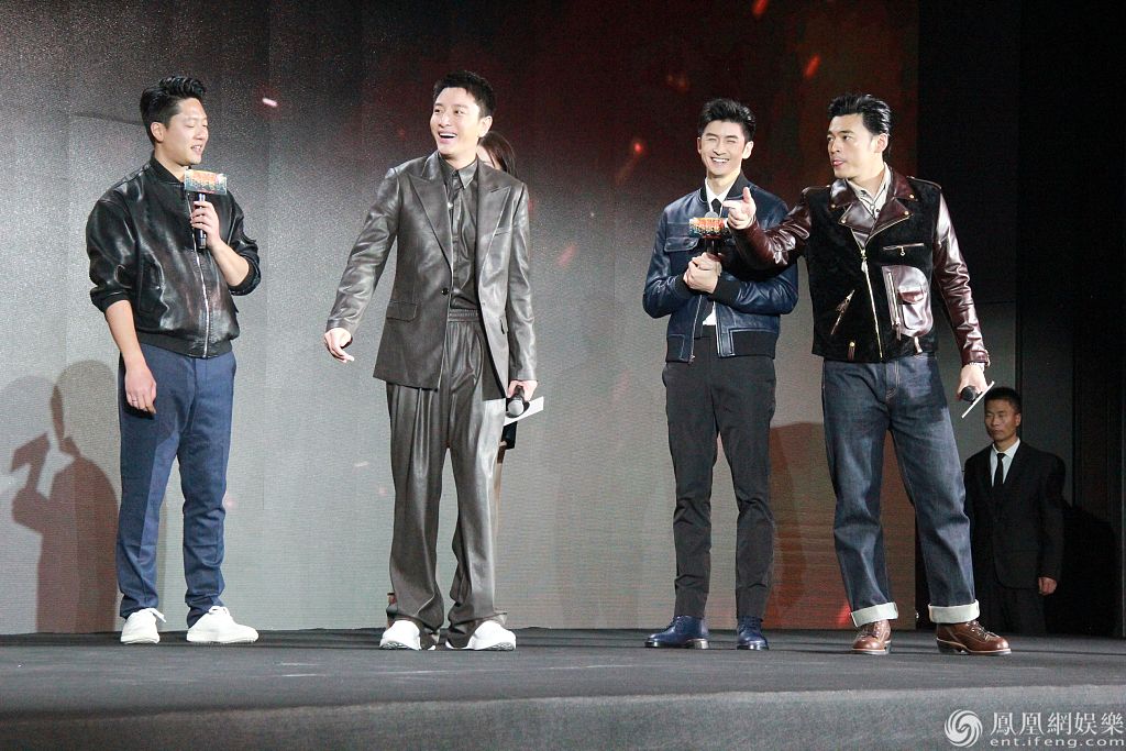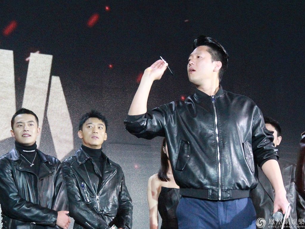 贾乃亮全黑look霸气射飞镖。导演丁晟透露片中有一场荷尔蒙爆棚的浴室戏,贾乃亮说这场戏里本来没自己,但被丁晟临时拉过去了,“尴尬的是16个人拍洗澡戏,15个人都脱了,然后他们看你最后一个人脱”。