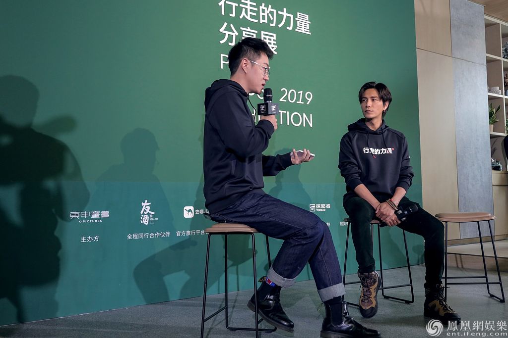 16日开幕活动现场,发起人陈坤、有心同行者倪妮,与主持人、同样也是2019年行者的花希一起回顾行走生活、畅聊行走心得,陈坤更化身分享展讲解员现场带大家观展,并与倪妮以手写提问、回答的方式开启展内互动展区,为展开幕。