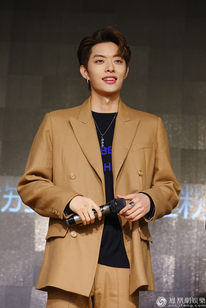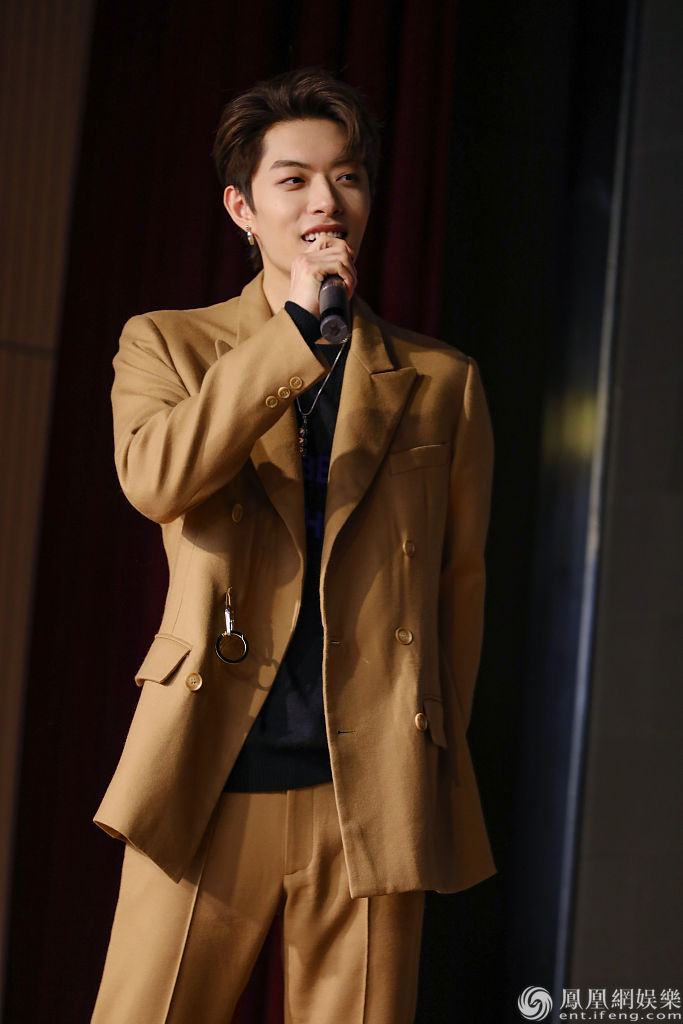 木子洋穿咖色西装复古优雅。