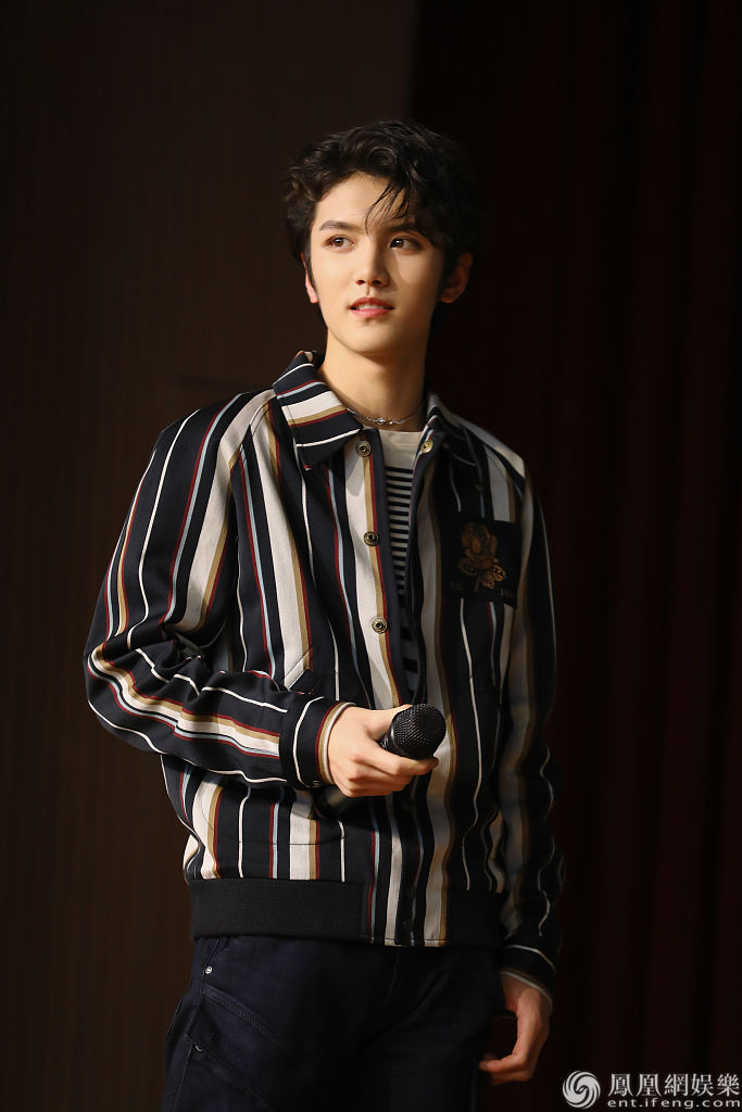 灵超穿条纹衬衫展成熟英伦风。