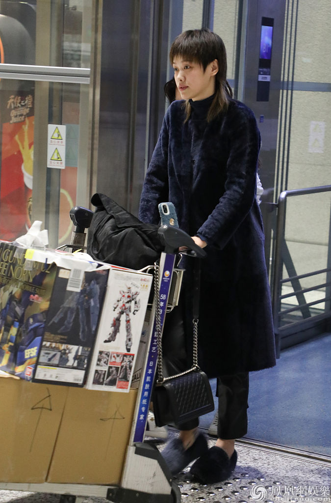 老婆吴莎梳个性发型贴心推行李超暖心,两人分开走尽显低调。