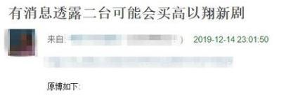 事情缘起是在12月14日晚上,有网络爆料称,浙江卫视有意向买下高以翔新剧的版权。