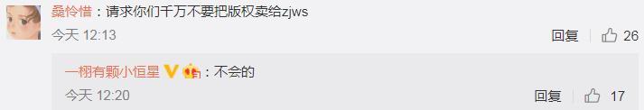 在评论区,有高以翔粉丝留言请求不要把新剧版权卖给浙江卫视。该CEO回复说:“不会的”,正式表明剧方态度。