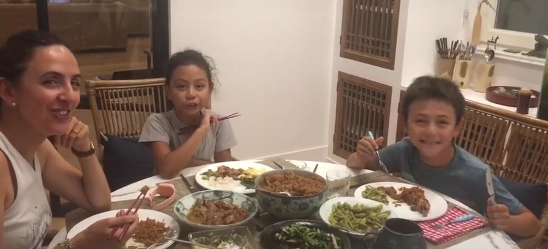 视频中,安娜带着两个孩子表白奶奶:“奶奶,羊肉饭太好吃了”,两个孩子都很乖巧懂事,听妈妈的话,吃了奶奶做的一大桌子饭,自然是要感谢奶奶的。奶奶听到孙子孙女吃的这么开心,也一定非常的欣慰,刘烨真是好福气,娶到了安娜这么贤惠的老婆,把两个孩子教育的这么好,可以自己忙自己的事业,安娜照顾家庭的同时,也有忙自己的事业,非常优秀的一个女性。