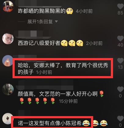 从评论区可以看到,网友说:“诺一这发型有点像陈冠希”,“女孩像妈妈,男孩像爸爸”,“安娜太棒了,教育了两个很优秀的孩子”……你喜欢刘烨家的这两个萌娃诺一和霓娜吗?
