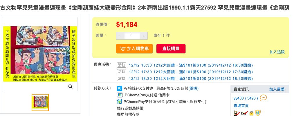 而这些书也变成了名副其实的绝版古董。即使是在对岸的台湾省,这一系列的书被列入到了古籍善本行列,并且是“古文物罕见儿童漫画连环画”。两本书合计买到了1184新台币,大约是276元人民币。