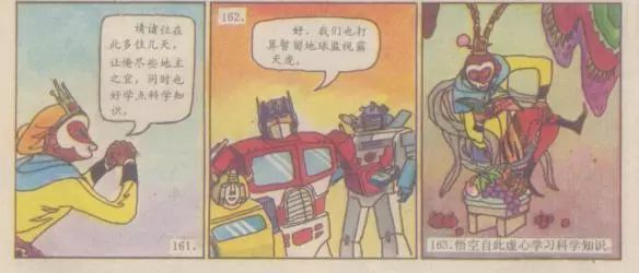 在这个系列的故事当中,颇有相互学习的味道。比如孙悟空在擎天柱的帮助下打倒了霸天虎,然后想要学习一些科学文化知识: