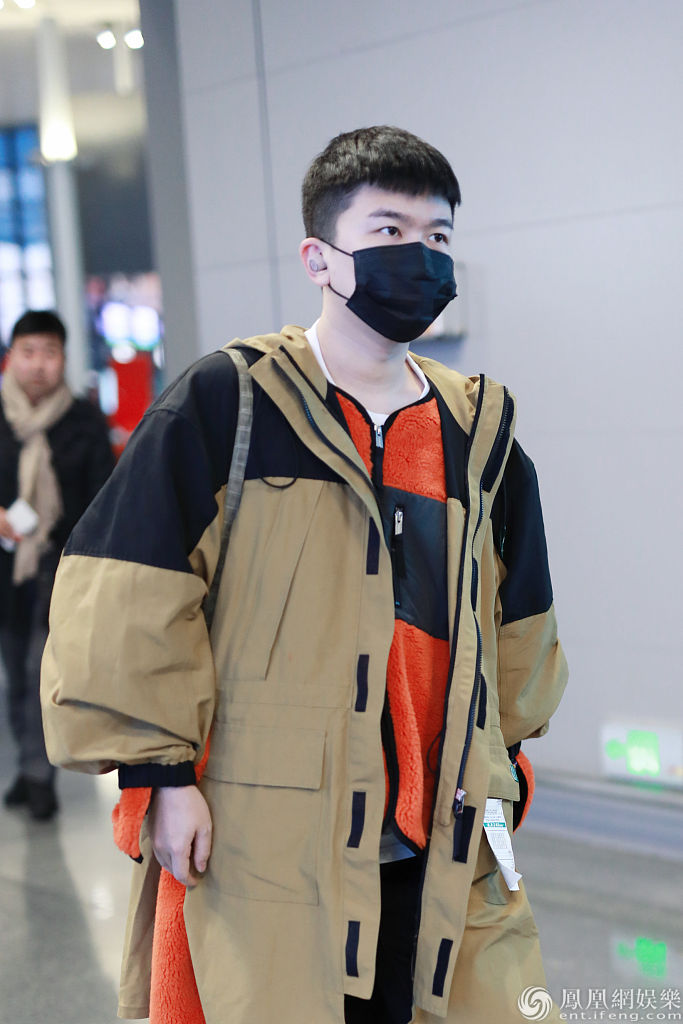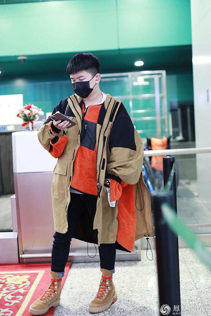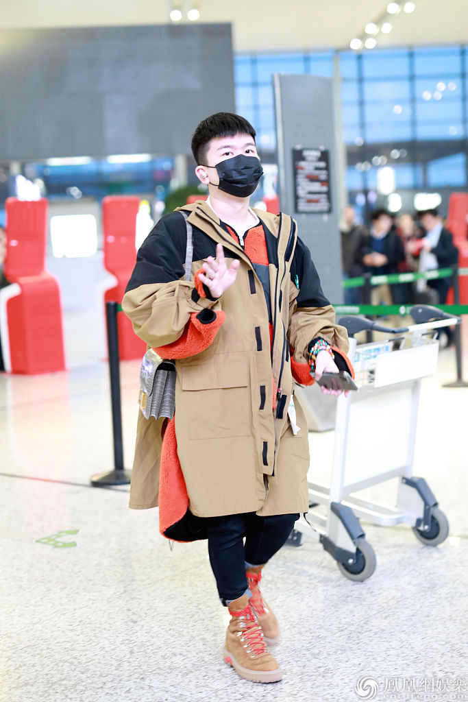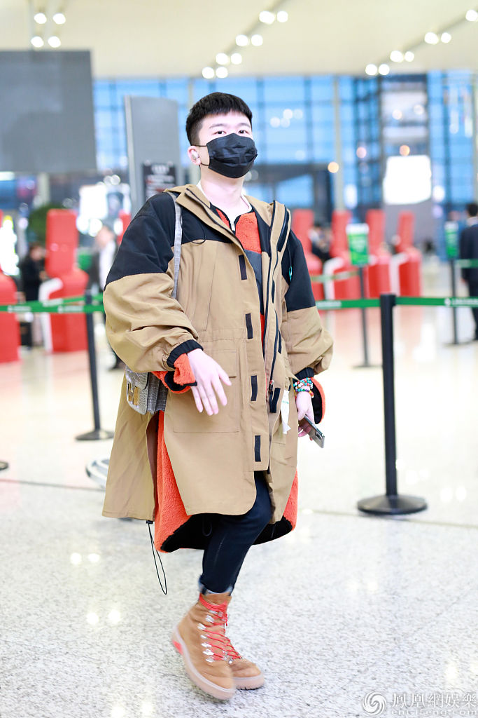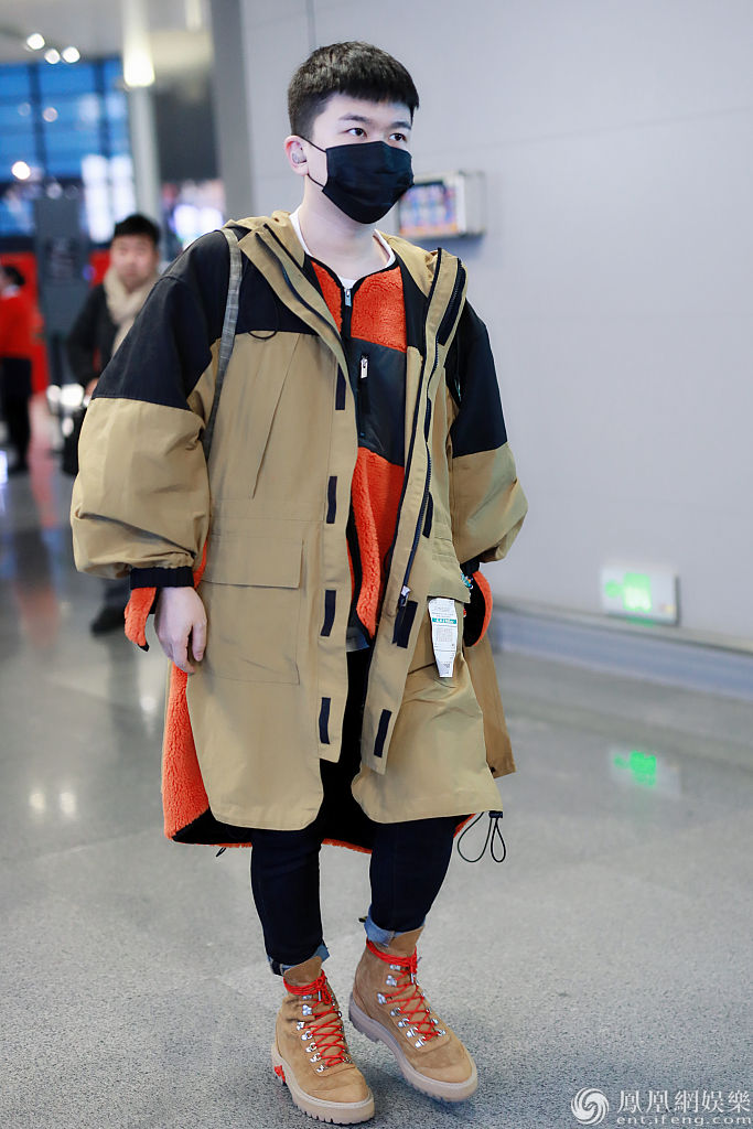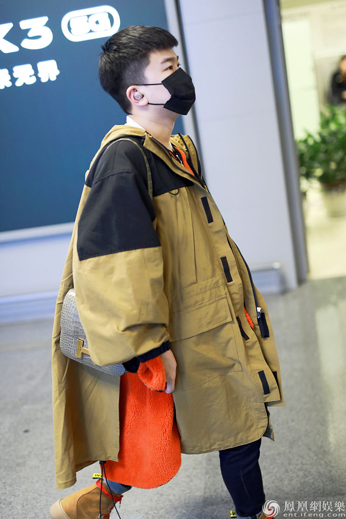 张大大口罩遮面单肩挎包,穿潮装时尚有型。