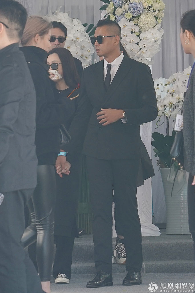 范玮琪牵手老公陈建州,手绢捂面强忍悲痛 。