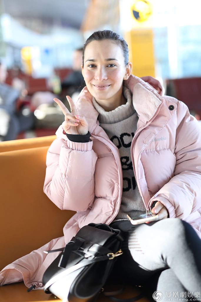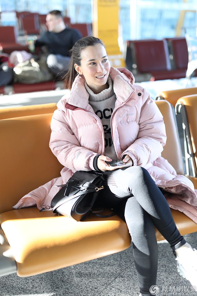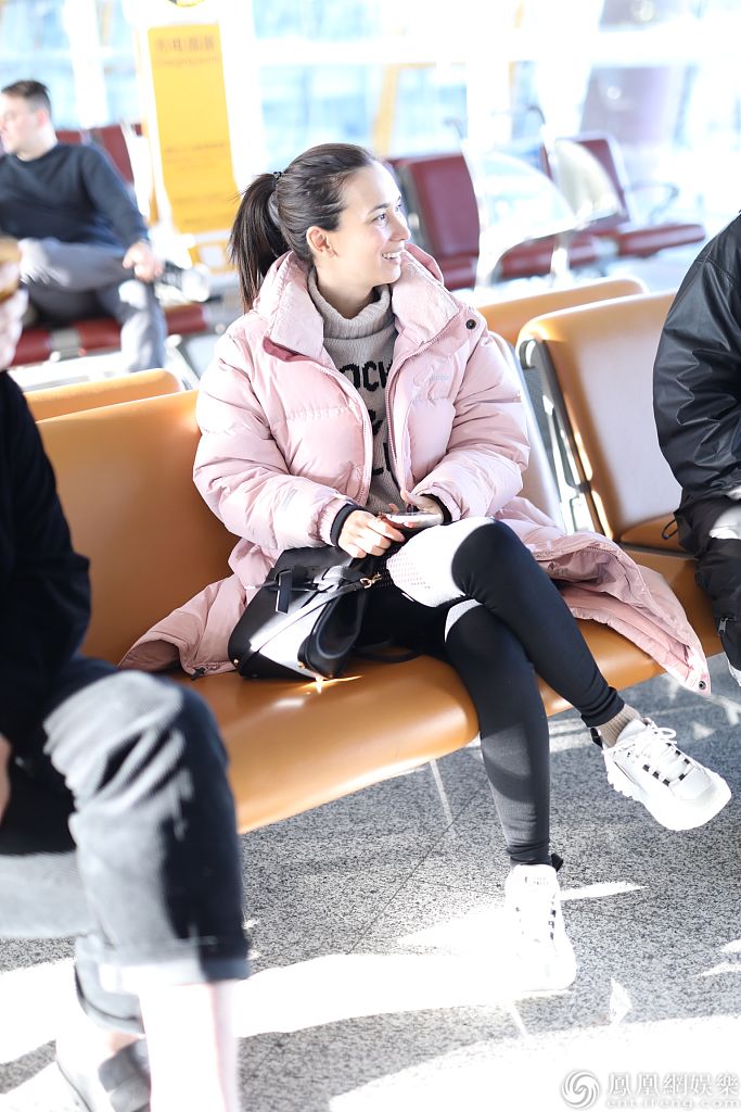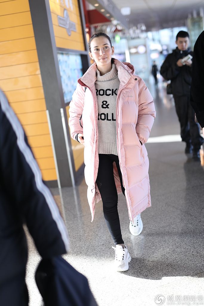 2019年12月14日,北京,卢靖珊现身机场。她身穿粉色羽绒服对镜比耶甜笑,十分可爱。卢靖姗这件外套多次出镜,想必也是很喜欢