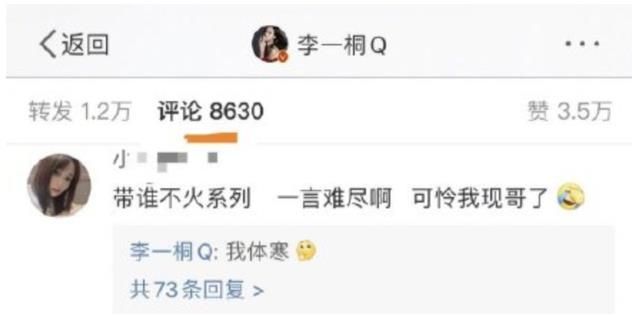 由于两部戏都没出圈,所以李一桐遭网友吐槽带不火男搭档“带谁不火系列,一言难尽啊,可怜我现哥了”,随后李一桐在回复网友吐槽时自嘲“我体寒”。