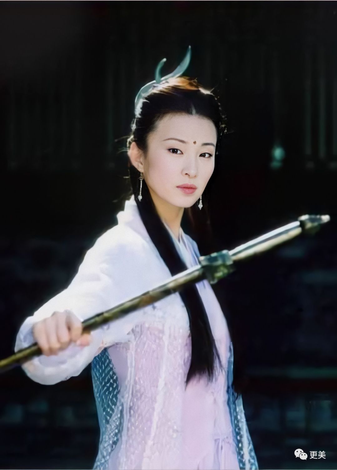 一张小巧的瓜子脸,看上去女人味十足,低头的时候不胜温柔,虽说颧骨发达了点儿,但并不影响她的美貌,彼时的她还曾被网友评为“倚天屠龙记里可以和周芷若比美”的女配。