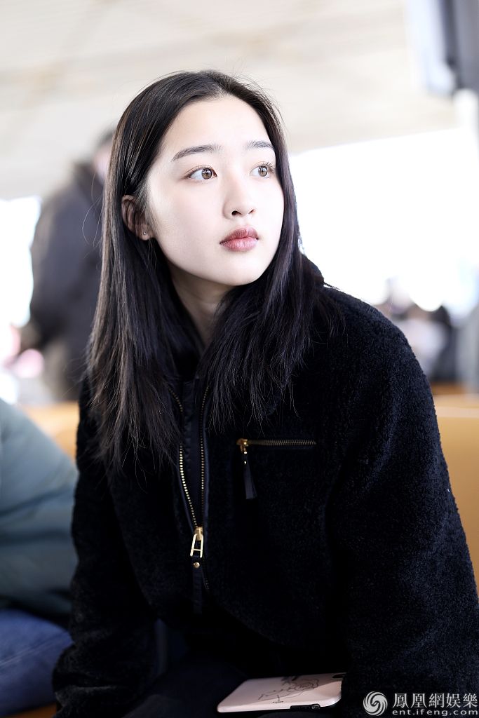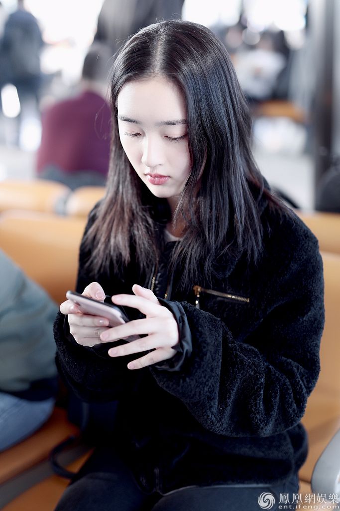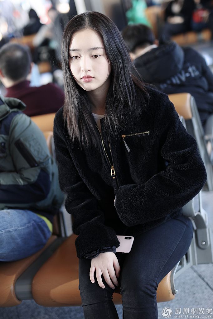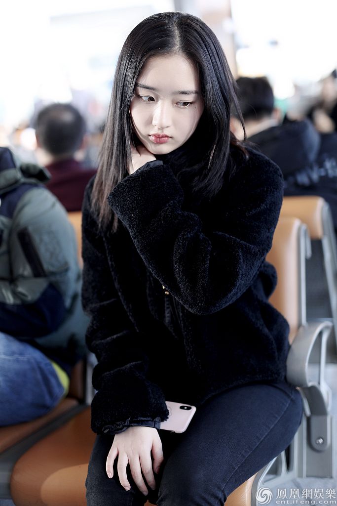 2019年12月13日,北京,邓恩熙现身机场。她身穿黑衣和长裤,坐在候机厅等候航班到达,眼神澄澈十分清