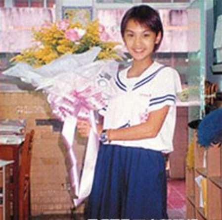 15岁的杨丞琳身穿水手服,在拍照时手中还抱着一束花,很是青春靓丽。