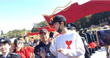 12月13日,肖战同央视“心连心”艺术团到福建古田会议会址参与彩排录制节