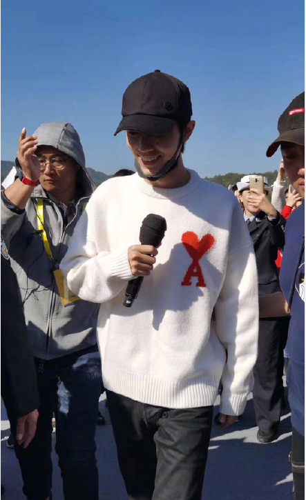 肖战身穿白衣黑色牛仔裤,尽显干净帅气。