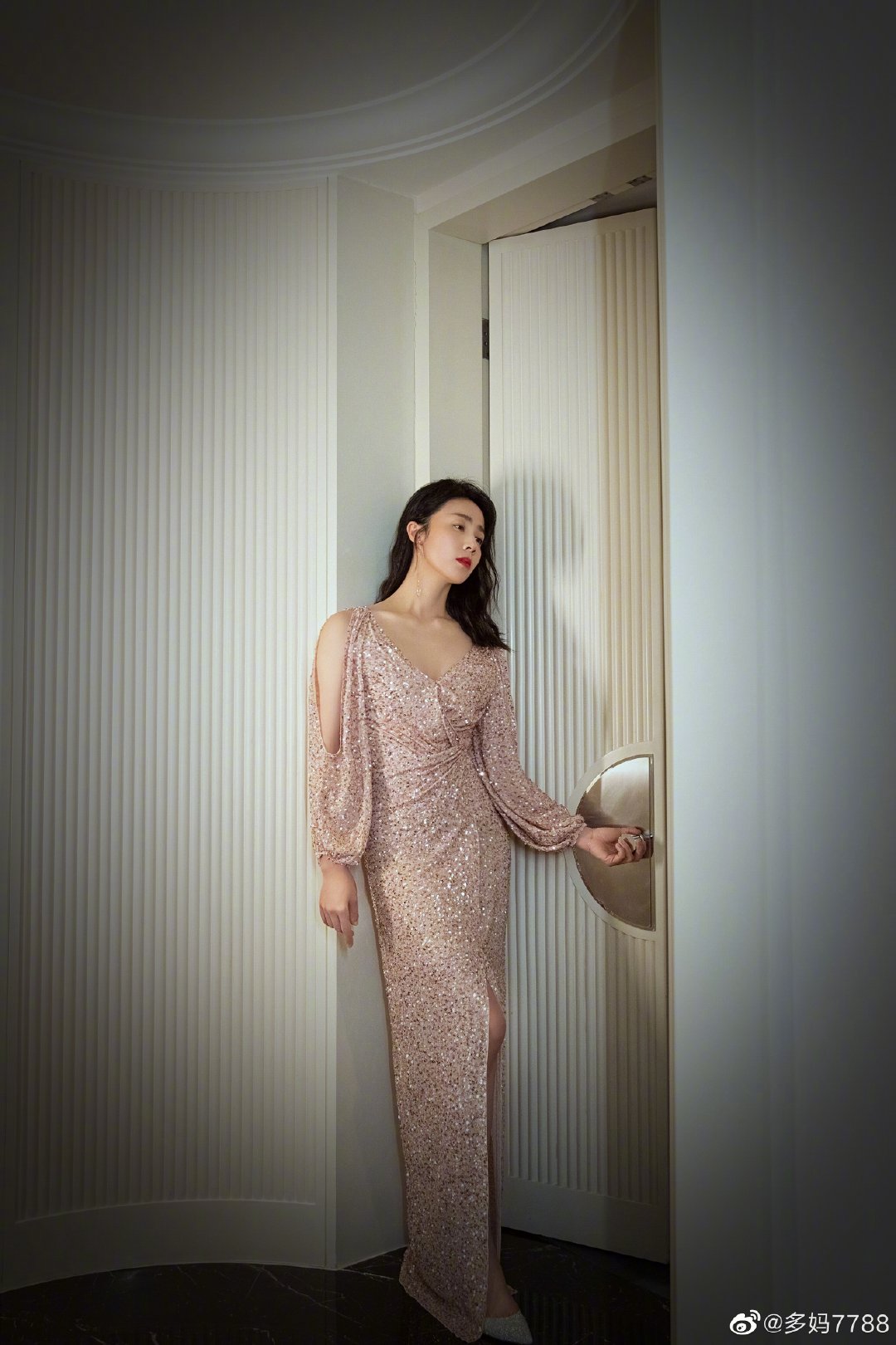 12月13日,孙莉晒出了一组参加活动的写真,穿着一件粉色的亮片碎花连衣裙,大V领小小的秀了一下性