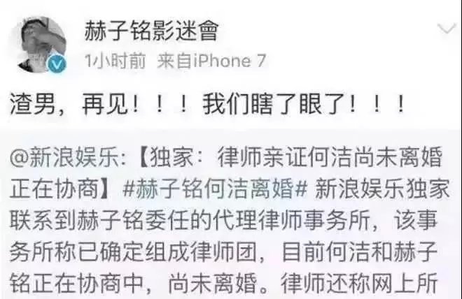 可以说赫子铭当时相当的惨了,所有舆论一边倒,都是向着何洁的,自己一点优势都没有。加上自己知名度也不如何洁高,所以两人撕X的前期,几乎都是何洁单方面碾压赫子铭。