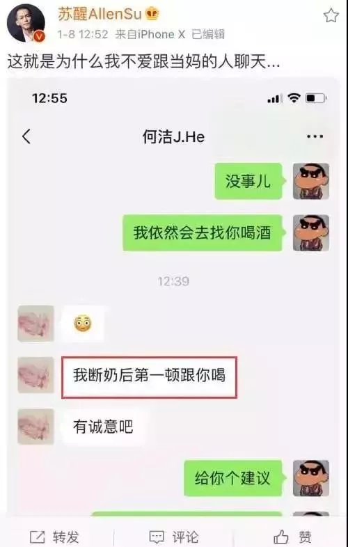 起因是因为苏醒在微博上晒了一张自己跟何洁的聊天记录,曝出何洁正在哺乳期的消息。