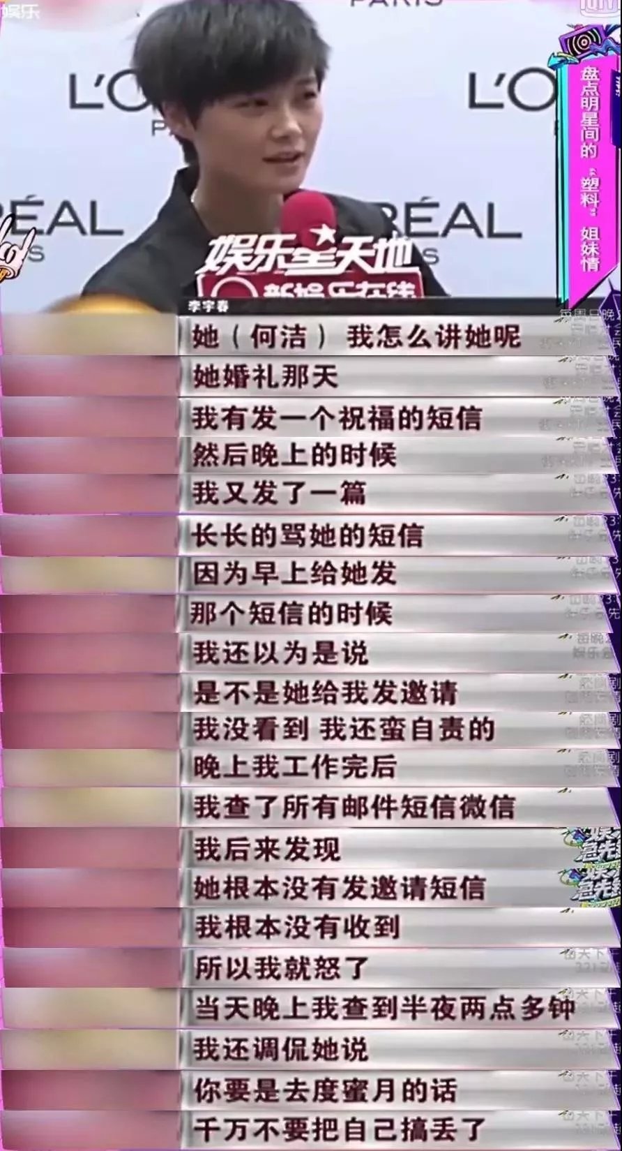 15年做采访的时候,有个搞事情的记者小伙伴,问她现在和李宇春现在关系怎么样,何洁非常刚的告诉记者,没有误会,自己很清楚自己做了什么,而且也不是很想再提李宇春了。