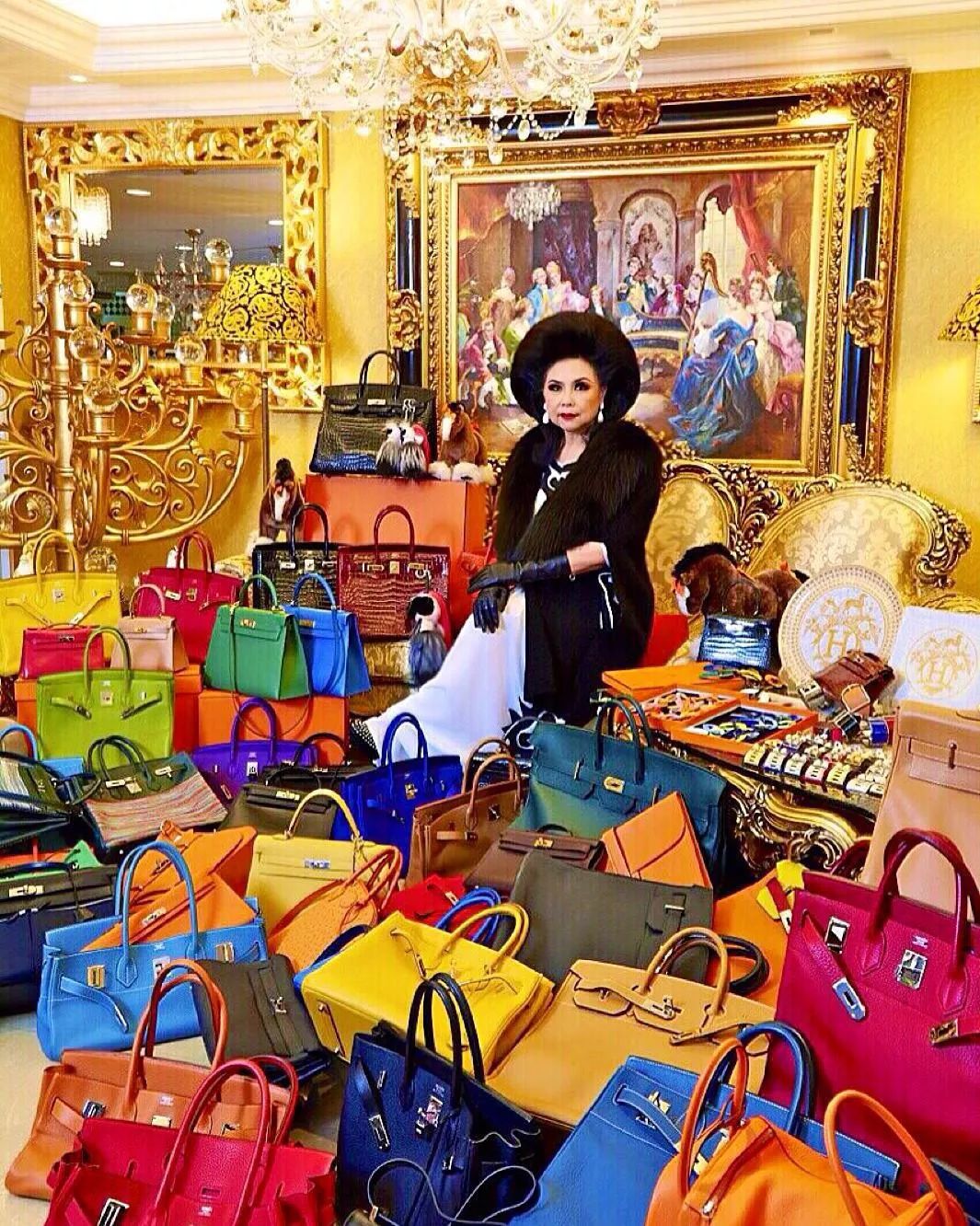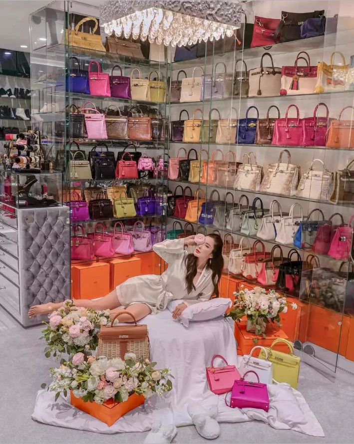 而她除了这个包,还有其余800多只爱马仕,安安静静地躺在尊贵的衣帽间里等着露脸的机会。