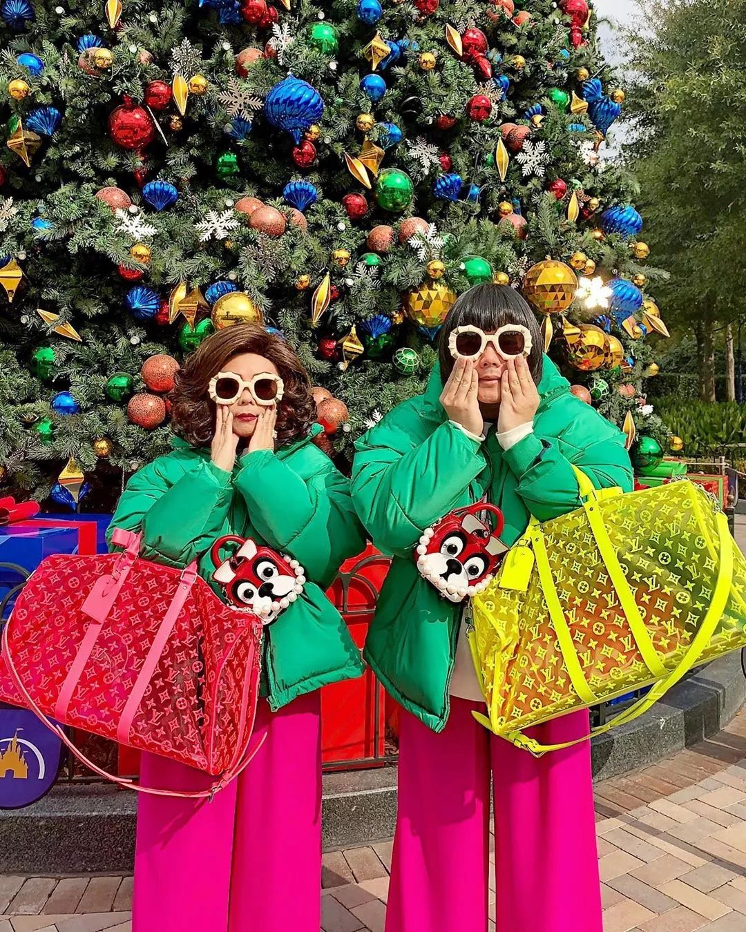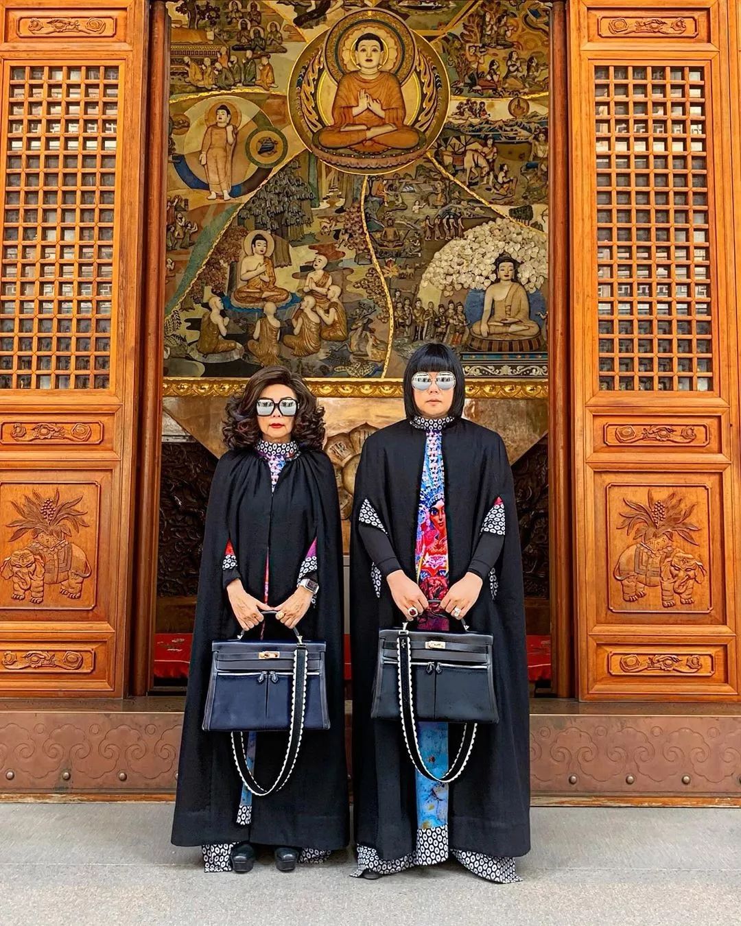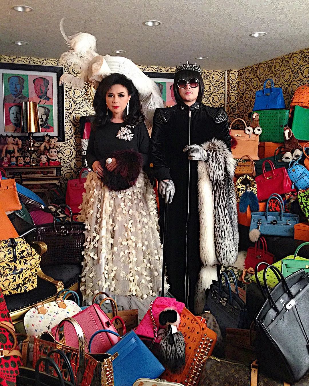 比起一模一样的造型扮相,显然这对母子更希望变成千手观音,每只手上都挂一个限量版包包。
