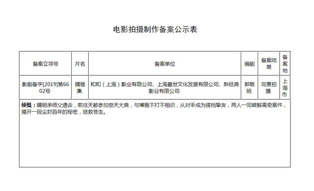 12月12日消息,国家电影局关于2019年08月(中旬)立项公示显示,郭敬明编剧的两部新片已获准拍摄。分别为《晴雅集》和《泷夜曲》,或将“阴阳师”这一系列分为两部分进行。