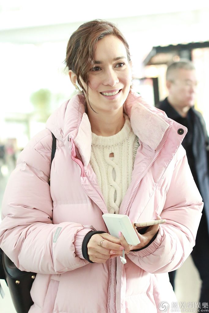 2019年12月12日,北京,卢靖姗现身机场。她穿粉色羽绒服走甜美贤淑风,和工作人员一路对谈甜笑亲和力十足,下面搭配黑色皮裤走路带风暴露御姐气