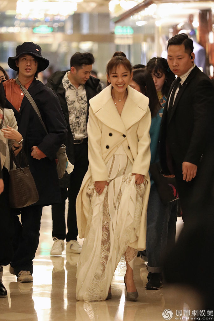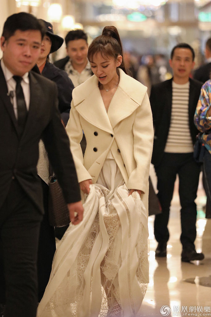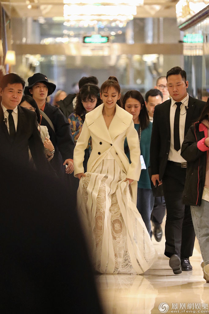 陈意涵穿白色长纱裙清新优雅。