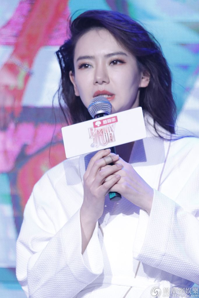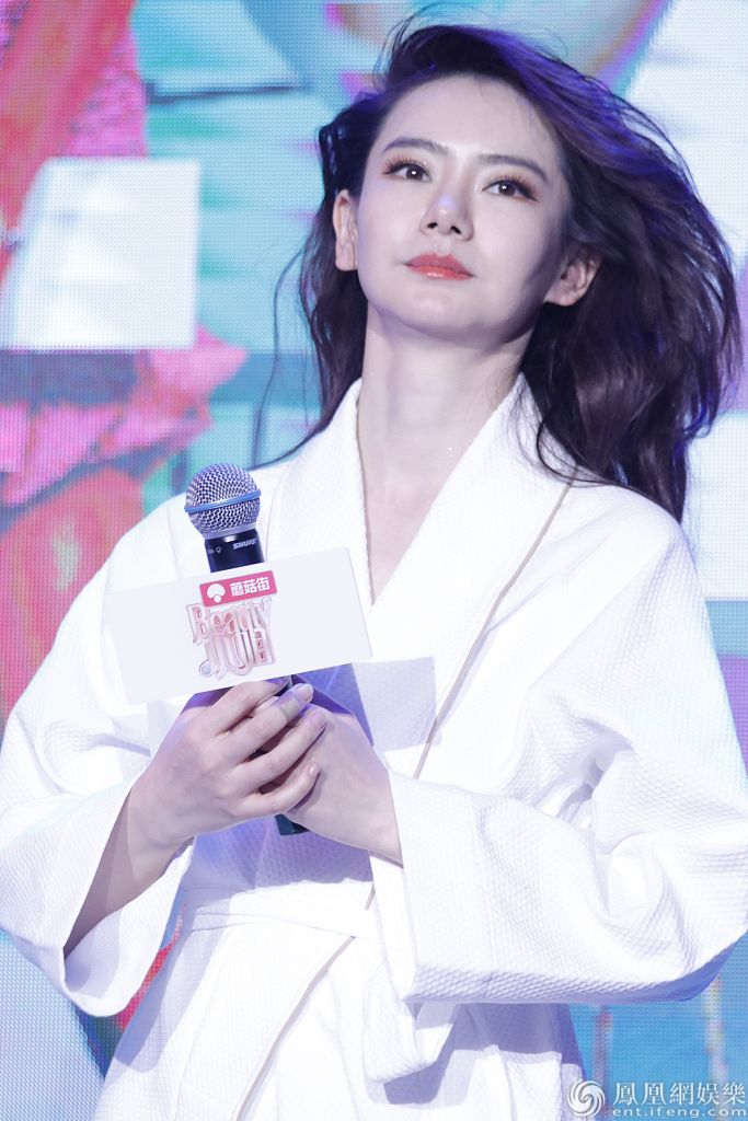 戚薇穿白色浴袍裙美腿吸睛,在现场甩发攻气十足