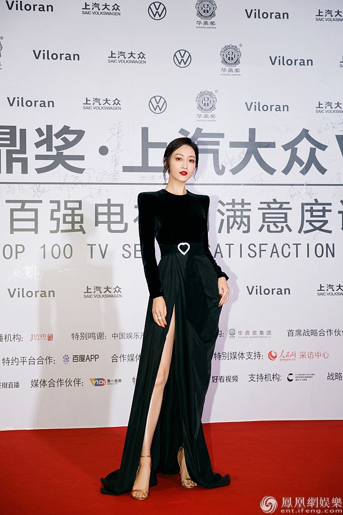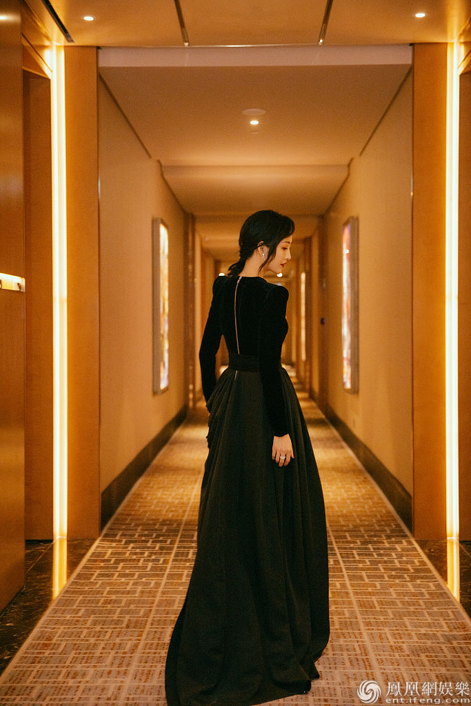 她化绝美妆容搭配黑色丝绒高开叉礼服,长腿尽显,神秘气质然若黑魔仙,这优越的身段实在是太绝了!