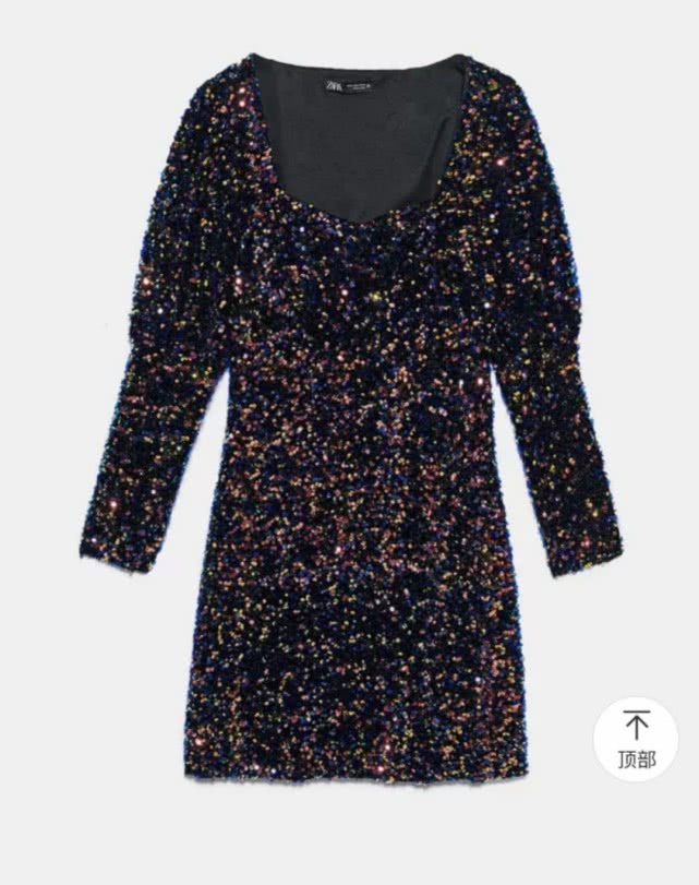 相同的多色亮片,相同的袖子与领口设计……这条裙子看上去就是李小璐店铺即将上架的那款连衣裙,但仔细看一下领子上的标签,写的是某快销品牌哦~