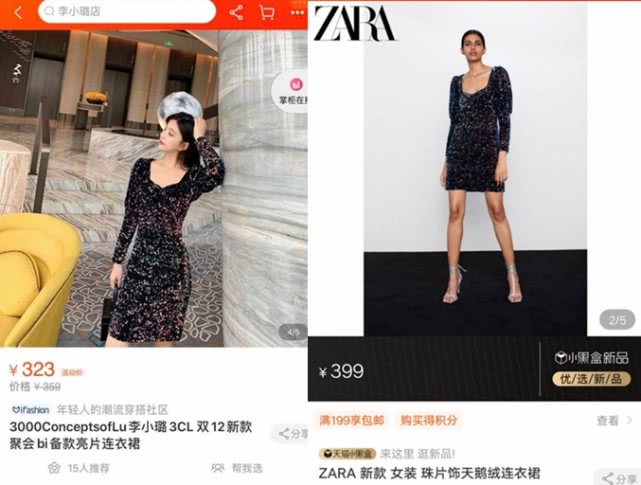 而且李小璐店铺中这款连衣裙是双十二的新品,目前还未开售。但在快销品牌中,这款连衣裙却是在11月份就已经有了购买后的评价了哦……谁抄谁,不用多说了吧。