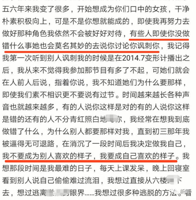 她在受到一些非议之后呢,写了一篇长文,解释自己为啥要辍学,大意是说自己在节目播出之后受到了很多身边的人的非议和排挤,这些指指点点让她的学生生涯过得很不愉快。