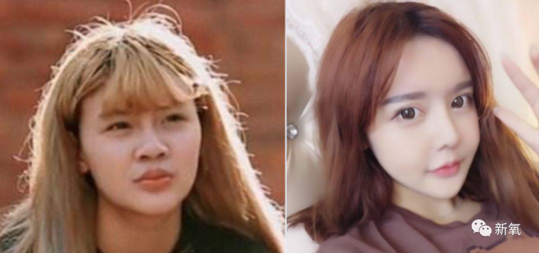 而现在鼻梁明显高了好多,看右图直直的一根很像是假体的形状,鼻头小且精致了一些,额头也比之前饱满...