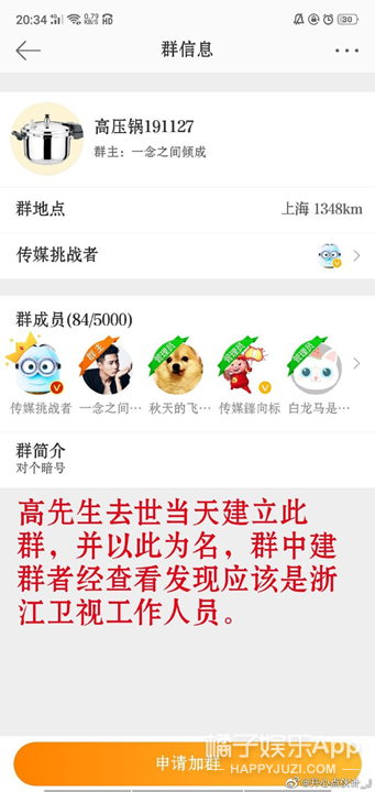 高以翔去世当天,有人建立了一个名叫“高压锅”的粉丝群。