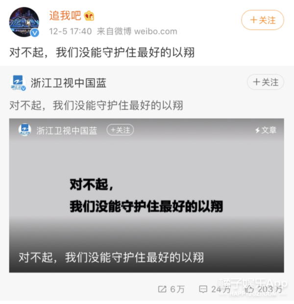 一边是浙江卫视宣布当晚的《追我吧》节目停播。