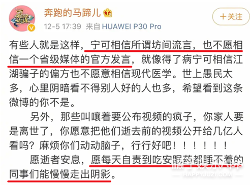 指责大家宁可相信坊间传闻,也不愿意相信省级媒体的官方发言。