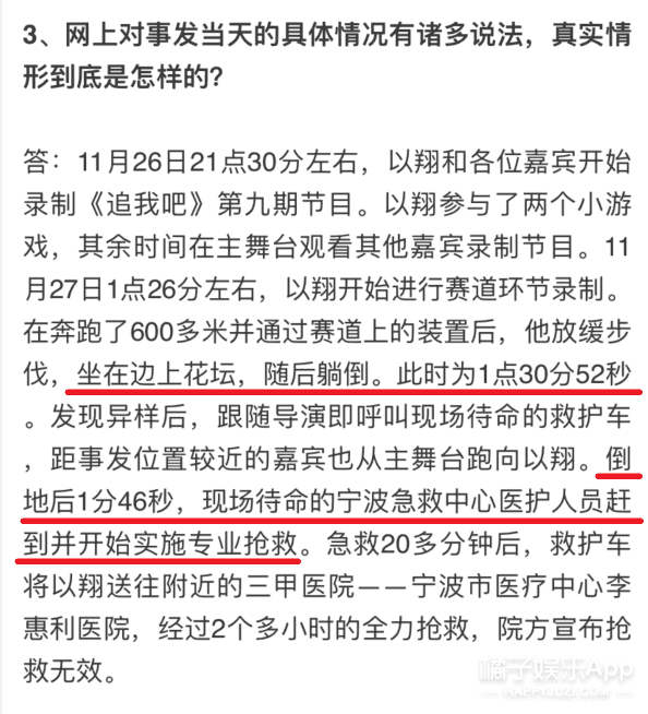 他们还说,以翔倒地之后的1分46秒,现场待命的医护人员开始实施抢救。