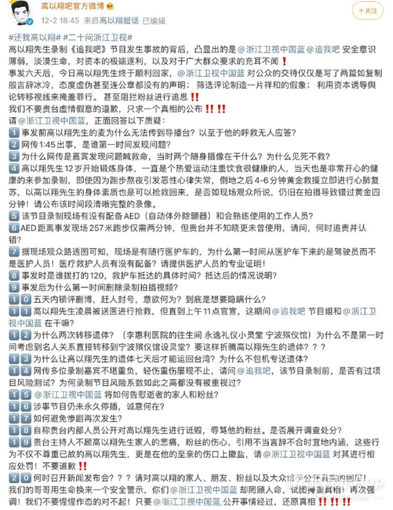 “公司认为浙江卫视应有更具体表态,包括就医纪录、现场影片都必须向家属有个交代”