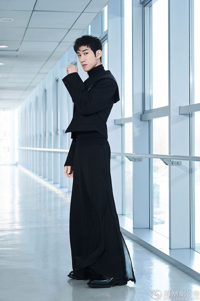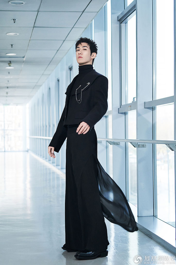 他身穿西装配薄纱阔腿裤贵气十足,内搭黑色高领衫尽显儒雅气质,堪称百变男神!