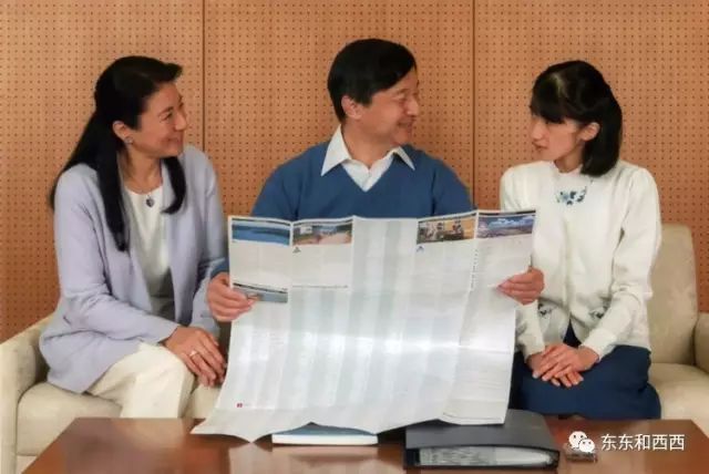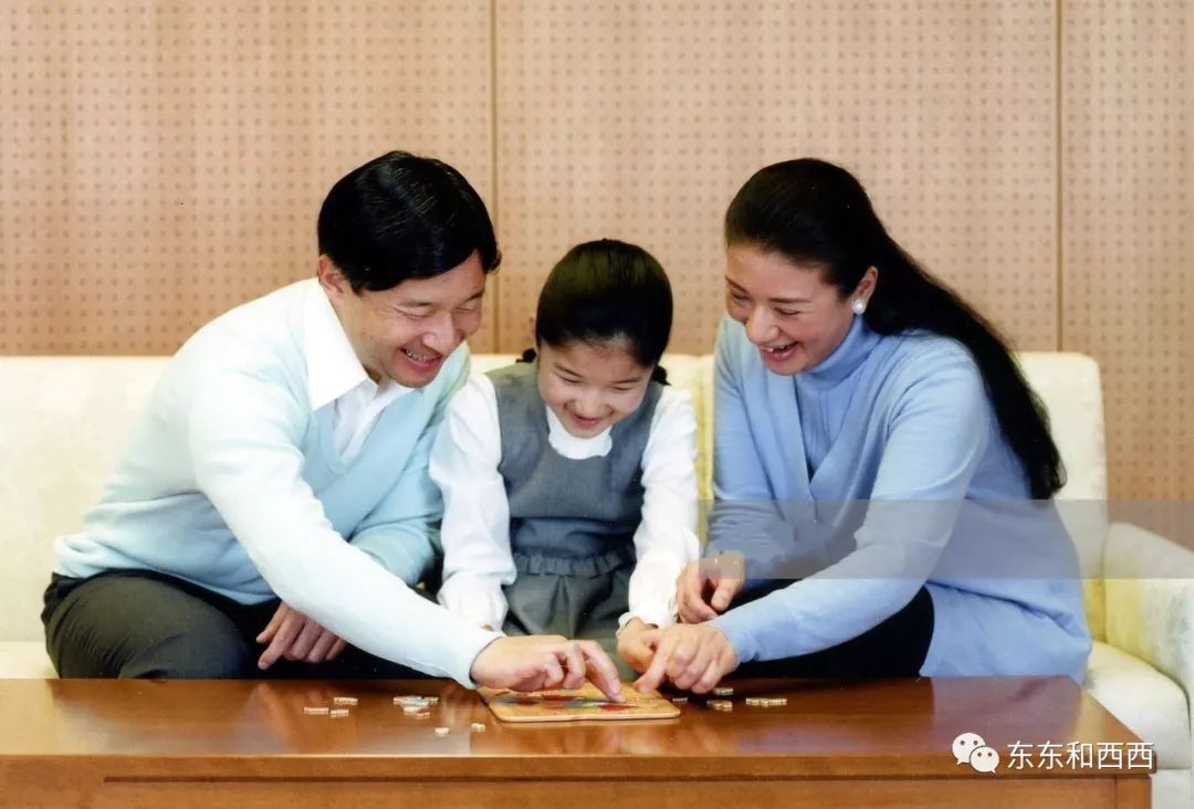 与德仁天皇坐在同一个沙发上,和当年德仁雅子合影的外套都穿同一件: 当时是夫妻俩,如今与公主:
