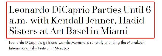 外媒标题赫然醒目地写道,“莱昂纳多趁卡米拉·莫雷尔离开美国,和肯豆等超模在趴体场玩到约凌晨6点”。