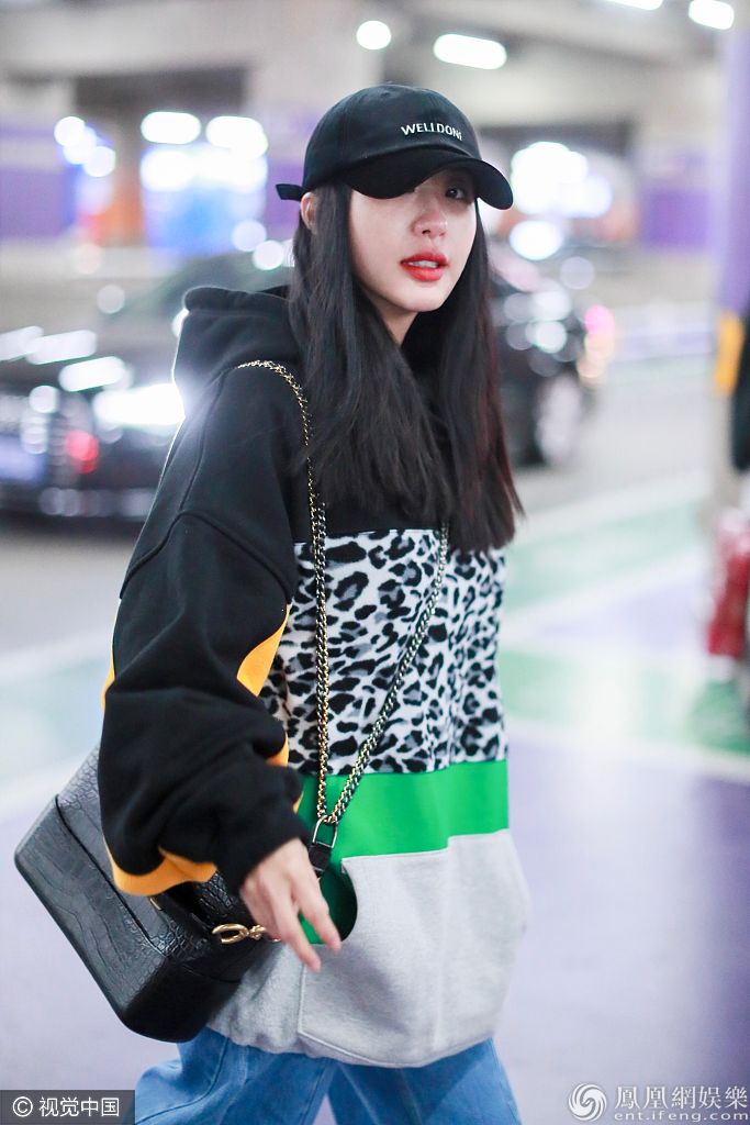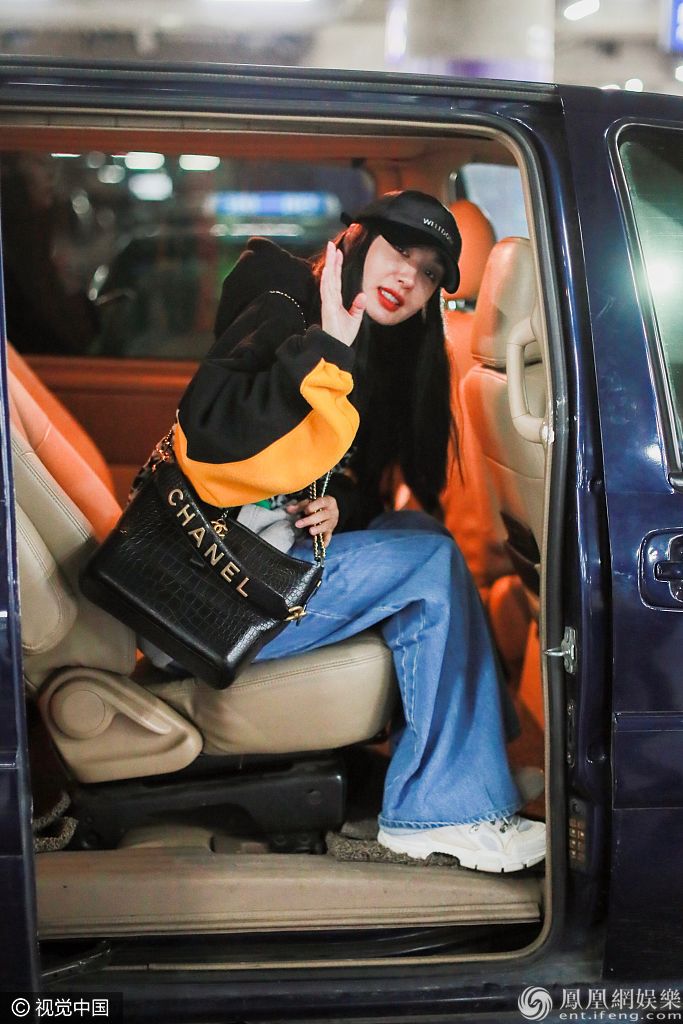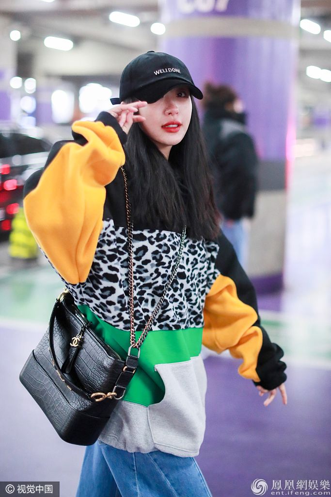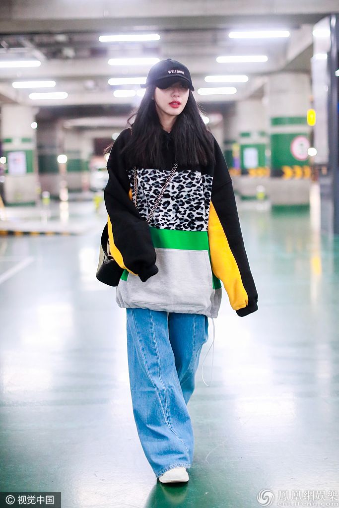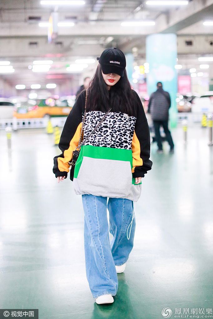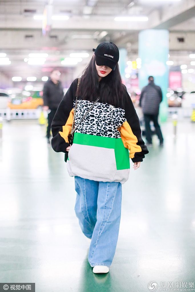 2019年12月6日凌晨,女星李菲儿从外地飞回北京现身机场,最近酷爱宽松服饰的她当晚戴着棒球帽,穿着多色拼接的oversize卫衣,搭配牛仔阔腿裤,街头风满满嘻哈范儿十足。 图片来源:视觉中国/视觉