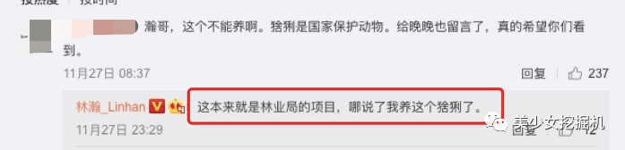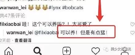 结合她在外网的评论里,回复网友说,猞猁可以饲养。