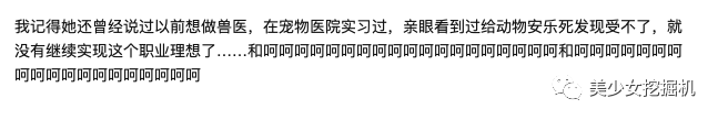 甚至曾经的梦想是当兽医。因为无法接受动物安乐死的场面,才无法实现这个职业理想。